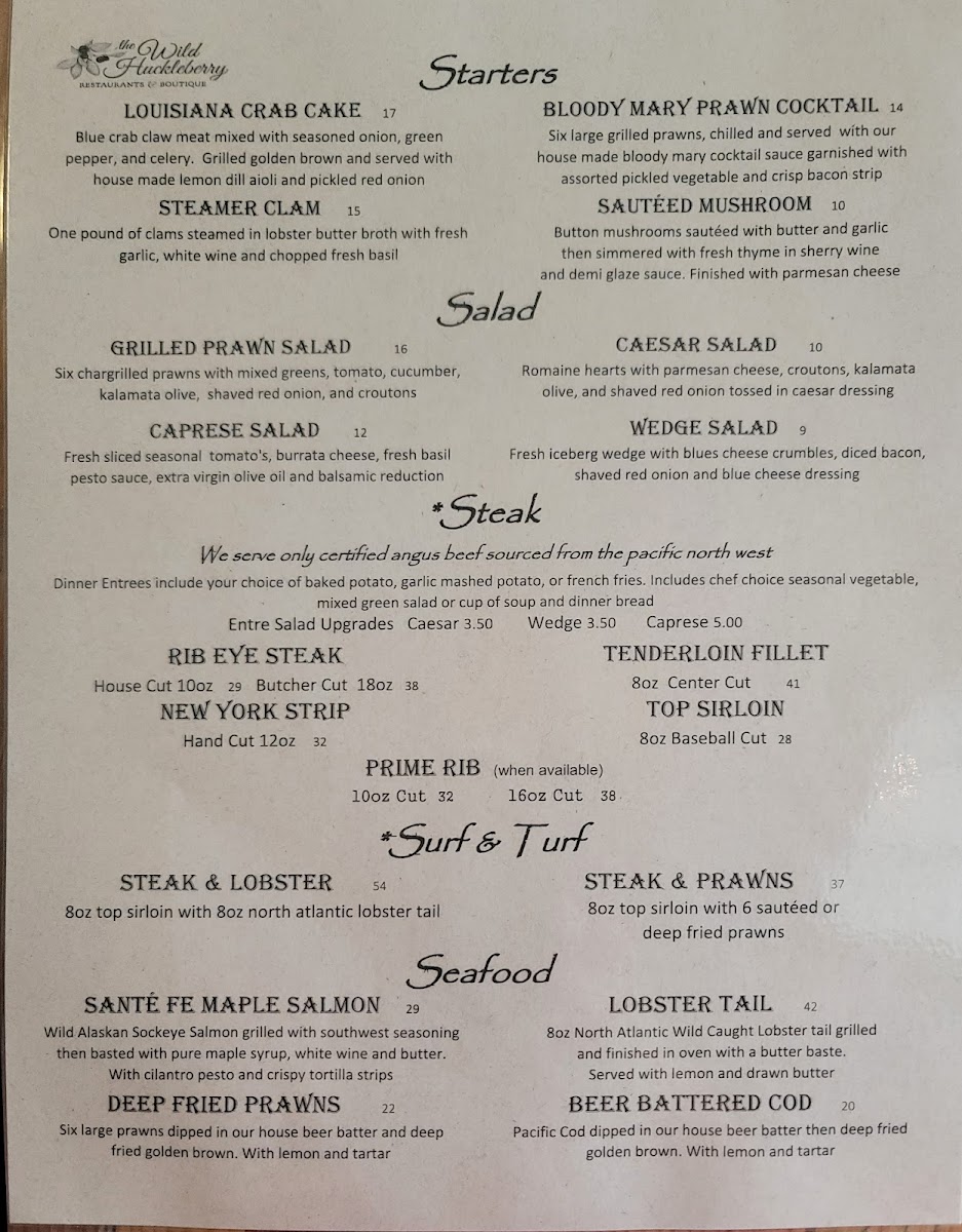 Welcome to The Wild Huckleberry, a hidden gem located at 302 S Mission St in Wenatchee, WA. This vibrant eatery beckons food lovers with a menu brimming with delectable options. Start your culinary adventure with the Louisianna Crab Cake, featuring rich blue crab claw meat served with a zesty lemon dill aioli, or dive into the Steamer Clam—a luxurious experience of clams steamed in savory lobster butter broth.